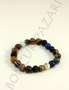 Ürün Çapı : 8 mm Delik Çapı : 1 mm Renk : Karışık Renkli Ürün içerisinde 23-24 Adet Doğal Taş bulunmakta olup ürün standart boydadır. Doğal taşları birleştirmekte kullanılan ip lastik malzemeden imal edilmiş olup , yetişkin insan bileğine uyum sağlamaktadır.
