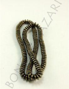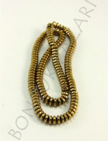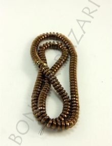Delik Çapı : 1 mm Ürün Ebatları: 3×6 mm Renk: Bronz 1 Dizide 150 Adet bulunmaktadır. Hematit taşı : Yaygın olarak strese karşı kullanılmaktadır. Pozitif enerji topladığı için yorgunluk hissine karşı da etkilidir. Mutluluk ve cesaret içinde kullanılmaktadır.